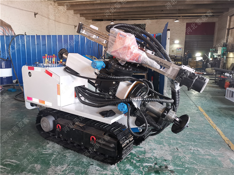 在煤礦開采領(lǐng)域,隨著技術(shù)的發(fā)展,各種功能的新型鉆機實現(xiàn)應(yīng)用,其基本結(jié)構(gòu)相似,基本功能實現(xiàn)了水平孔、垂直孔的打鉆功能。針對原有技術(shù)中的缺陷和不足菲克森設(shè)計生產(chǎn)的氣動履帶式鉆機在礦井內(nèi)可實現(xiàn)360度全方位的煤礦探水,探瓦斯孔和卸放壓力孔及地質(zhì)勘察等的鉆孔施工。