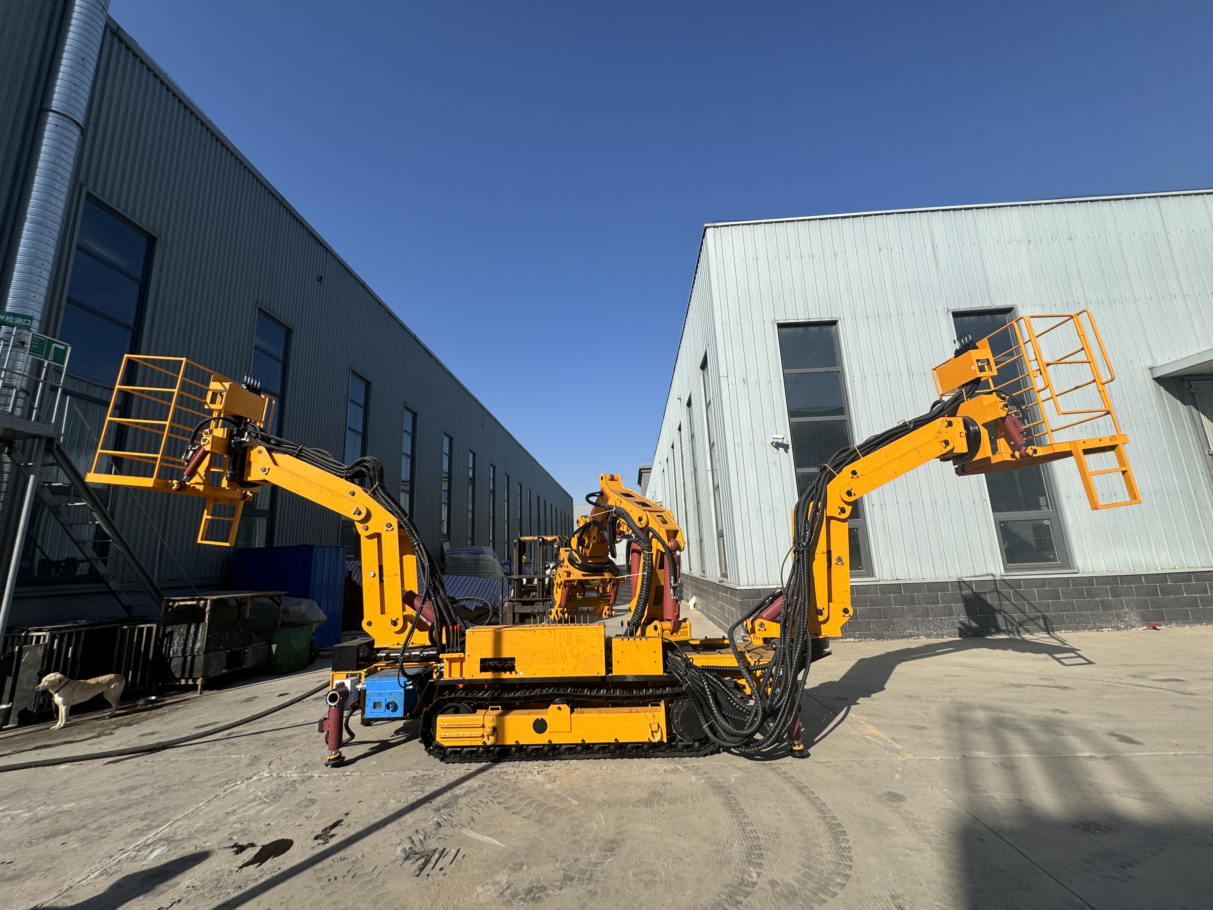 今天為大家介紹CGQZ 系列礦用氣動管路輔助安裝車,以壓縮空氣為動力,履帶行走,最大爬坡能力16°左右,工作機構可360°旋轉,大臂回轉機構可左右移動,使瓦斯管連接更方便準確。抓舉重量為2噸,抓夾管徑在160-630mm。行走、抓管機構配備遙控器,可以實現遙控和操作臺雙向操控。整機兩側各有一個操作平臺,平臺為手動操作,可360°旋轉。每個平臺都配備先導手柄,可以使安裝人員實現實時調整位置,操作舒適平穩,能更好的輔助工作機構的操作。另外,每個工作平臺都配有一個急停按鈕,當發生緊急情況時,按動急停按鈕可迫使整機急停。CGQZ 系列礦用氣動管路輔助安裝車極大地提高了施工的工作效率,減少作業人員 60%以上,明顯改善了作業安全性,大大減輕了工人勞動強度。